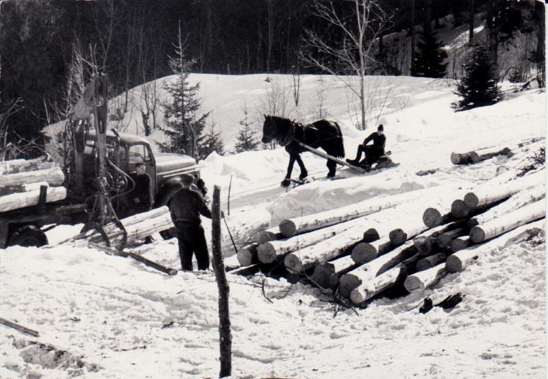 Olaf Sandum og Svarten møter den nye tid, Han bodde i Lundeby Gunnar Båsen mener det er ved Steinmyra innenfor Dammyr ved veien til Øyvannet. Reidar Kristoffersen ved lessekrana på lastebilen I begynnelsen av 1960