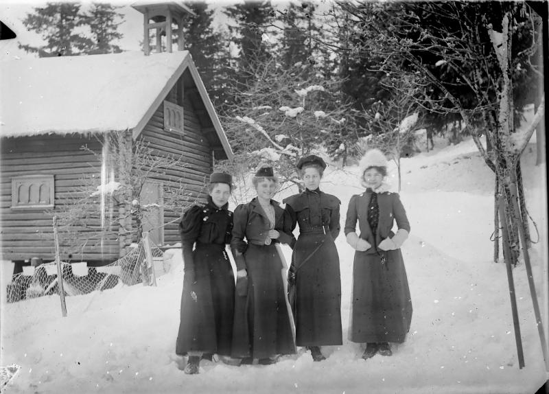 Konnerudkollen Sanatorium var utgangsport for sne og skisport. Her fra omkring 1900. Bildet er fra Harald Øhlckers samling. Hans forfedre og slektninger besøkte ofte Konnerudkollen.