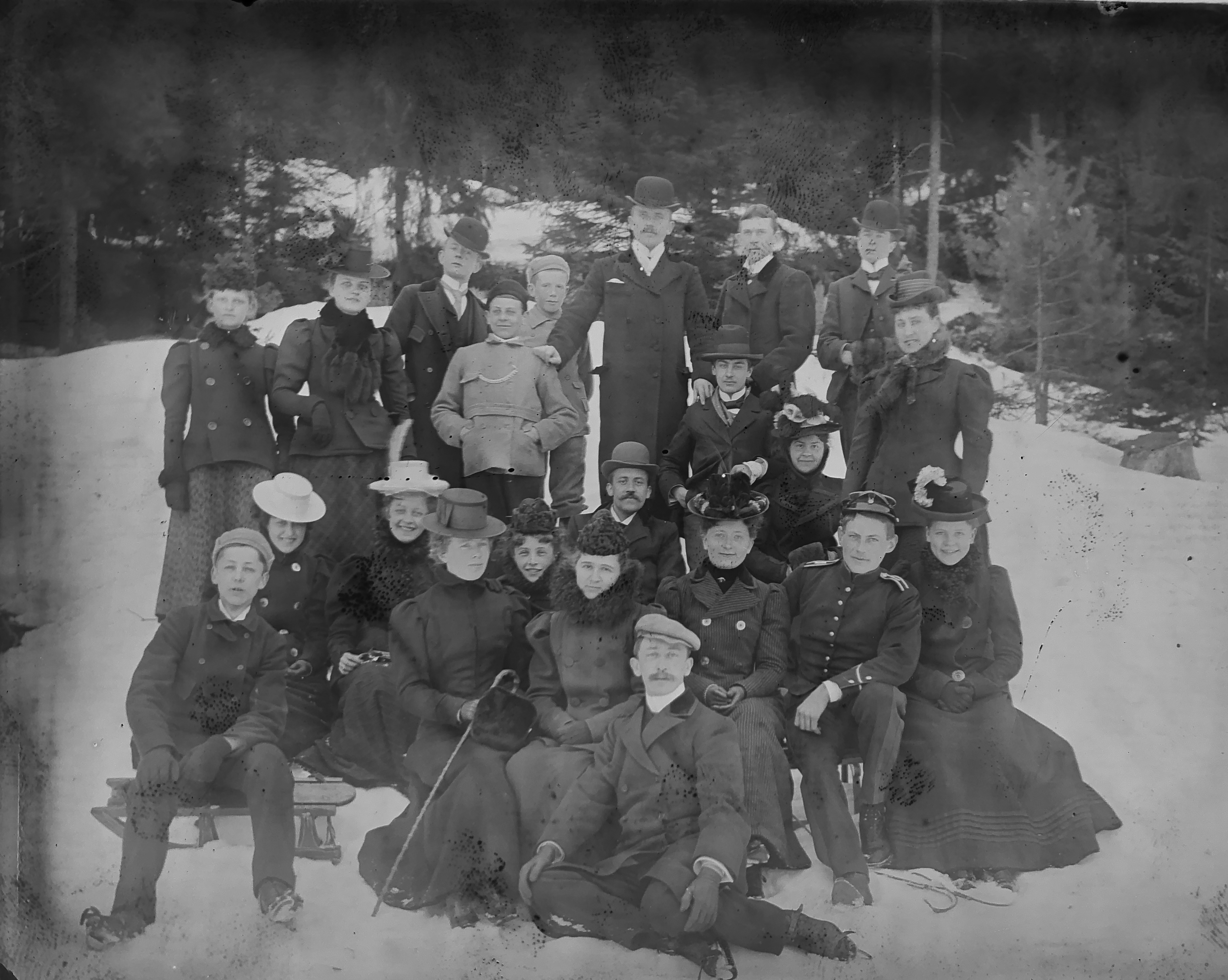 Konnerudkollen Sanatorium var utgangsport for sne og skisport. Her fra omkring 1900. Bildet er fra Harald Øhlckers samling. Hans forfedre og slektninger besøkte ofte Konnerudkollen.
