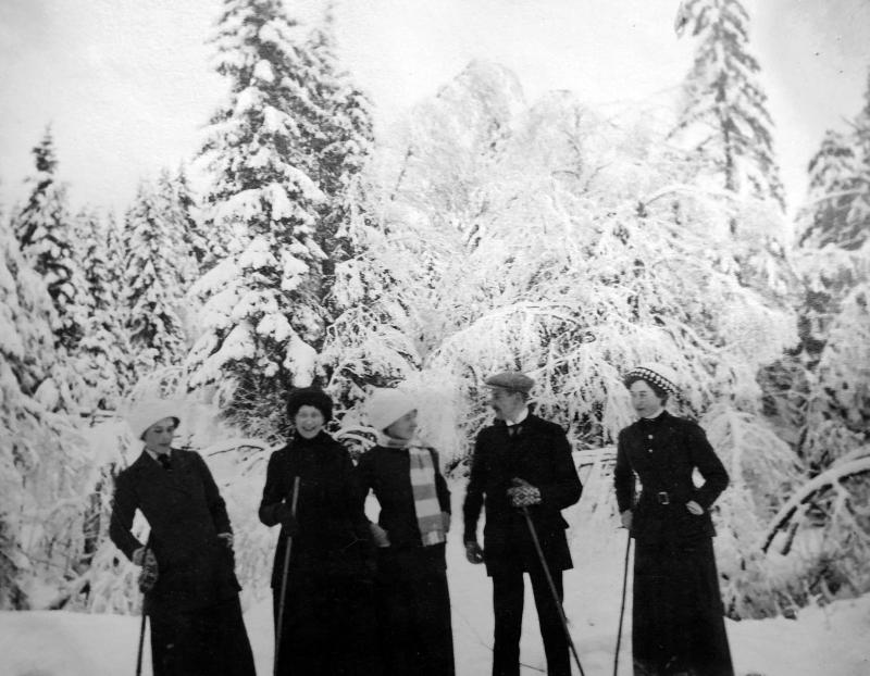 Konnerudkollen Sanatorium var utgangsport for sne og skisport. Her fra omkring 1900. Bildet er fra Harald Øhlckers samling. Hans forfedre og slektninger besøkte ofte Konnerudkollen.
