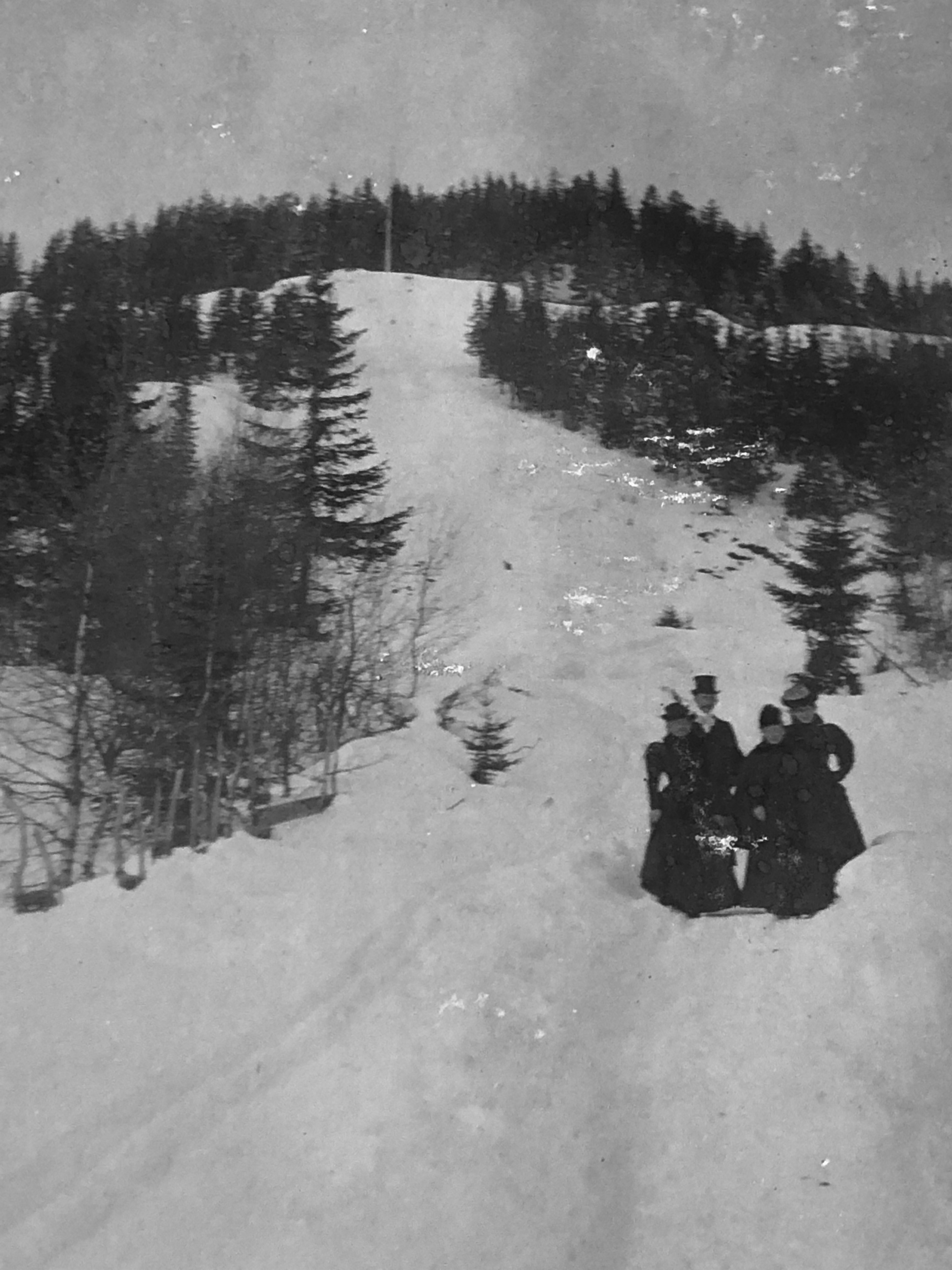 Konnerudkollen Sanatorium var utgangsport for sne og skisport. Her fra omkring 1900. Bildet er fra Harald Øhlckers samling. Hans forfedre og slektninger besøkte ofte Konnerudkollen.