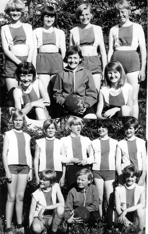 Et godt jentelag. Bildet er tatt ca 1970- Foran fra v: Inger Jørgensen, Bjørg Øygard og Kristin Ørmen 2. rekke fra v: Anne Mette Stokke, Åshild Berg, Marit Horne, Vigdis Blomseth og Eva Grethe Pedersen 3. rekke: Tove Nilsen, Bente Magnussen, og Grethe Torvund Bakerst fra v: Åshild Kollerud,Inger Elisabeth Lindseth, Arnveig Solbakken og Turid Karlsen