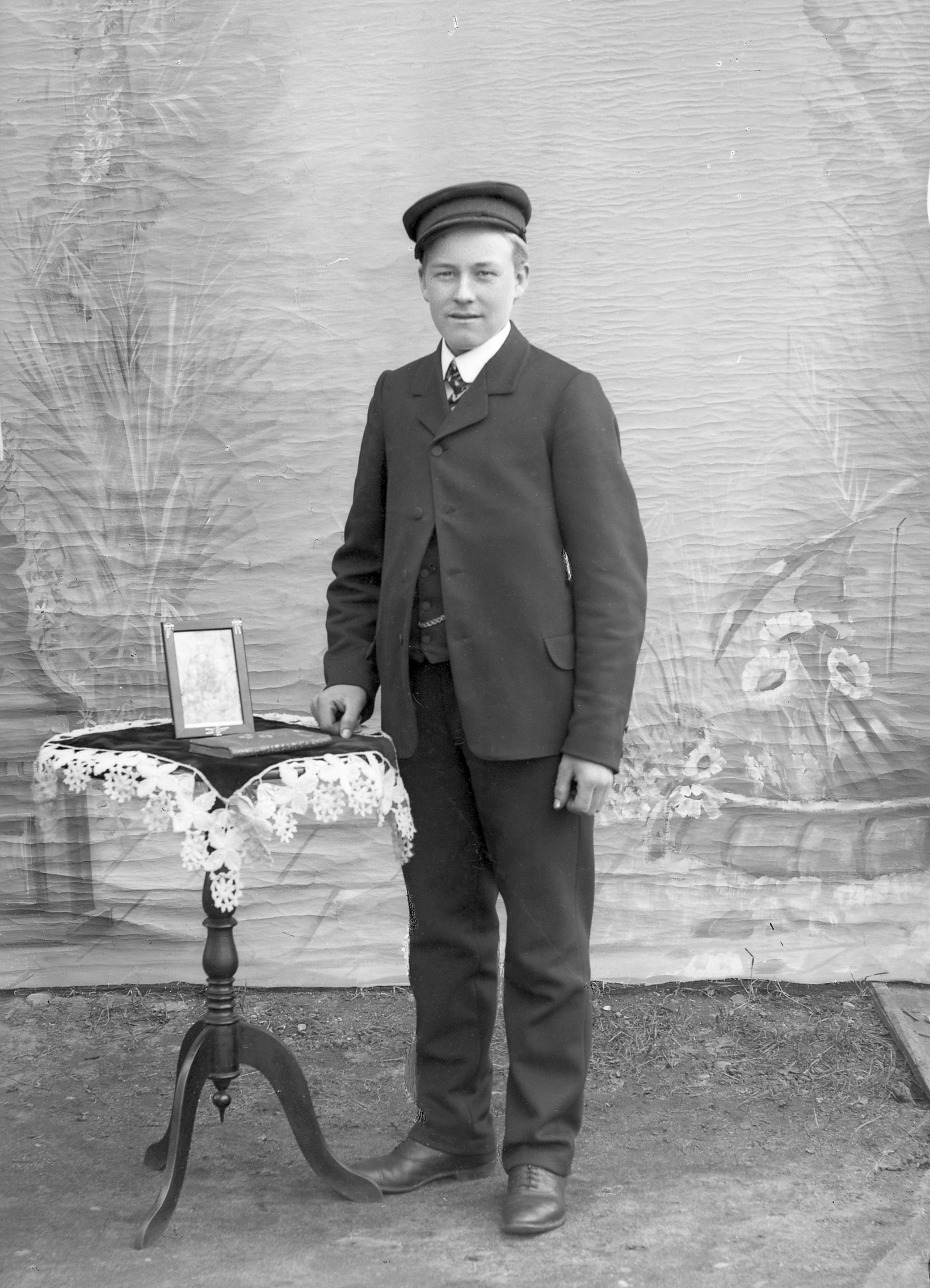 Glassplaten er skannet og behandlet av Fotohuset, Drammen. Sigurd Gulbrandsen, reiste til USA 1908, sønn av Henrik Gulbrandsen, Øvre Eikervei 39