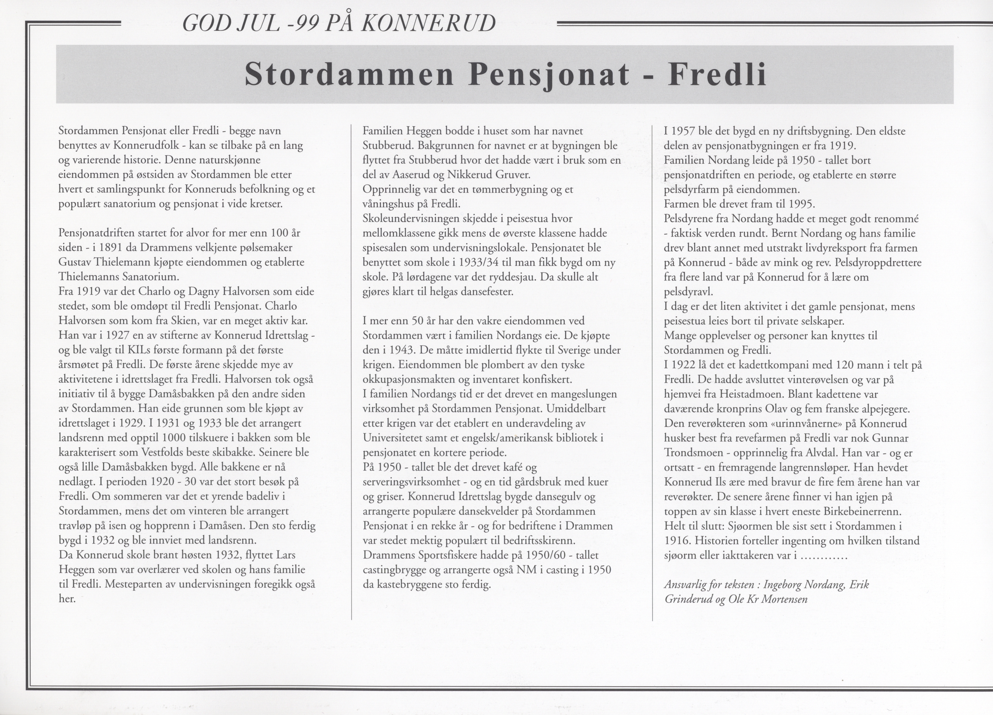 Fredli, Fredly, Julemerke, Lions Konnerud julemerke 1999, Thilemanns PensjonatTegnet av Oscar HaugeKlausul: ingen