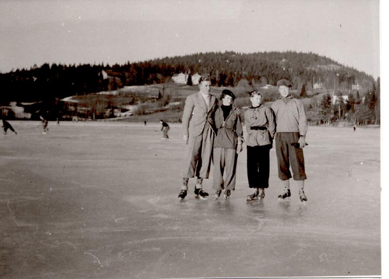 Det er søndag og isen er fin på Stordammen Fra v. Kjell Thue - Eva Olsen - Essi Bakke - Age Ildal