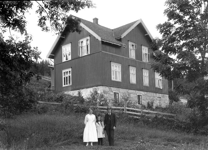 Glassplaten er skannet og behandlet av Fotohuset, Drammen. Rød, med Karl Hermansen og fru Karen , f. Sørensen, med en liten pike fra Østerrike. etter krigen 1914 - 1918