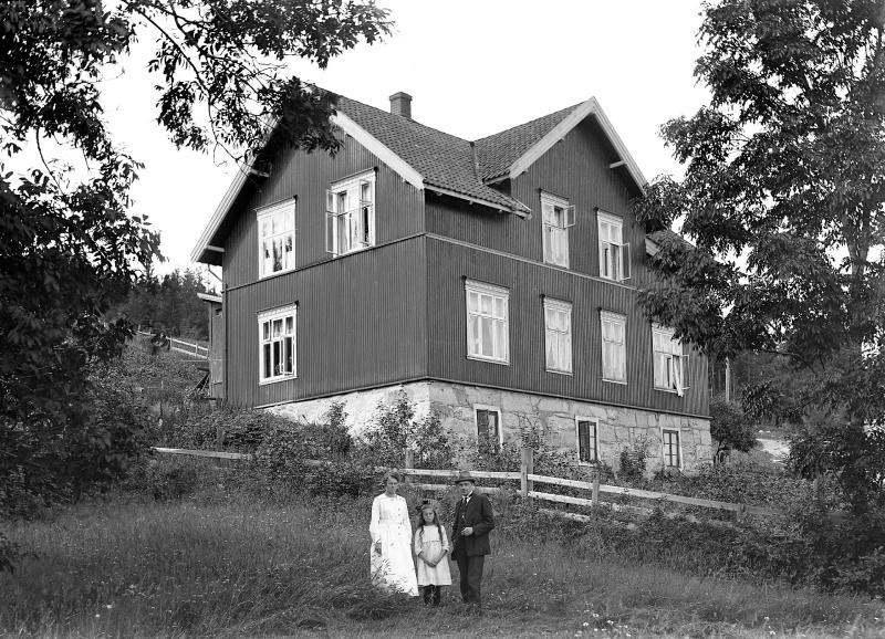 Glassplaten er skannet og behandlet av Fotohuset, Drammen. Rød, med Karl Hermansen og fru Karen , f. Sørensen, med en liten pike fra Østerrike. etter krigen 1914 - 1918