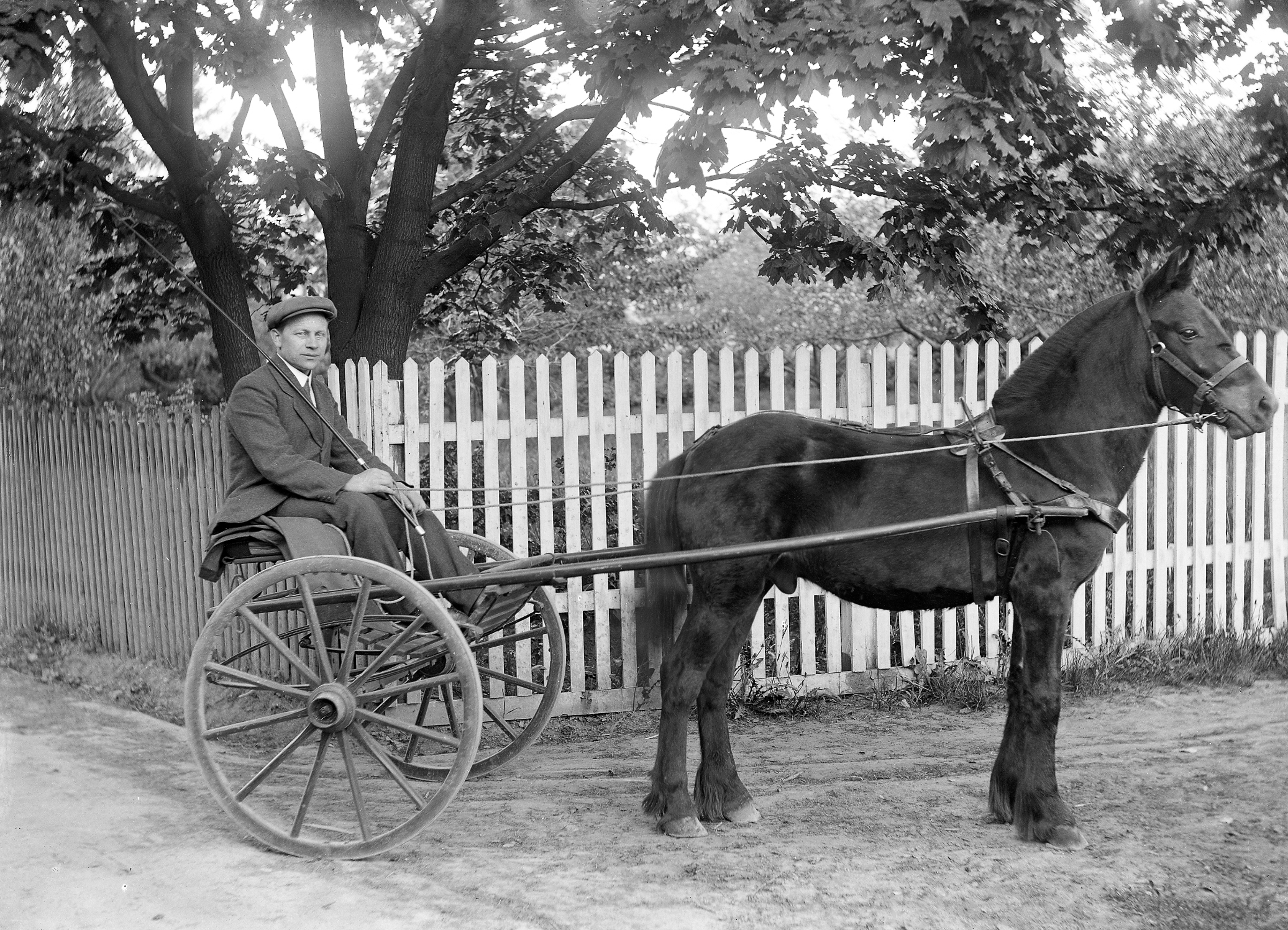 Glassplaten er skannet og behandlet av Fotohuset, Drammen. Hest og kusk utenfor Kopperud
