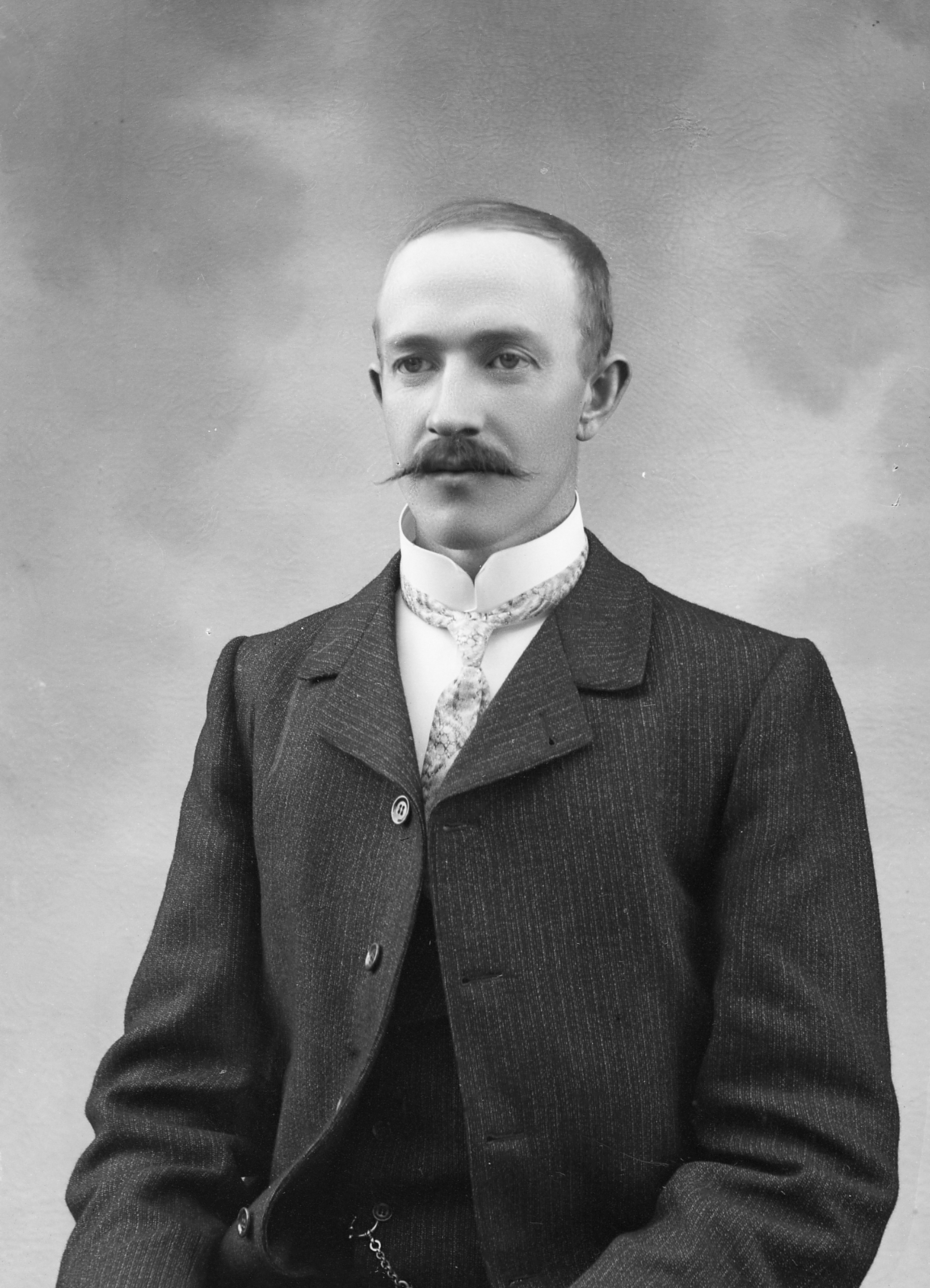 Glassplaten er skannet og behandlet av Fotohuset, Drammen. Han var en av eierene av Rødskog Brug og Guldlistefabrikk