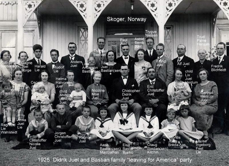 “Familien Juel og Bastiansen før avreise til Amerika 1925,” Skoger og Konnerud historielags bildesamling, besøkt 27. februar 2026, https://mail.skhist.nettsidetesting.no/items/show/663.