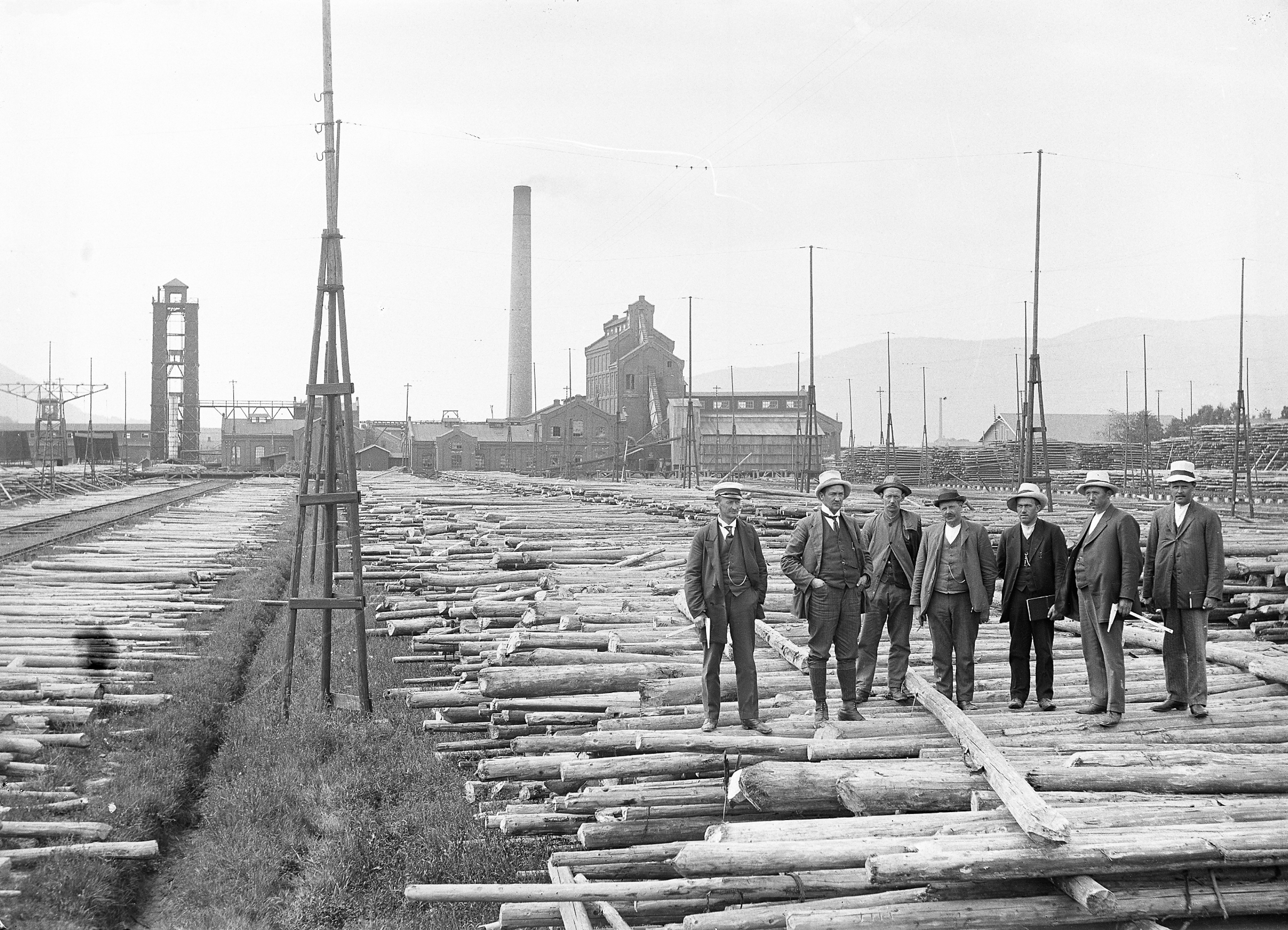 Glassplaten er skannet og behandlet av Fotohuset, Drammen. Tømmermåling på Gulskogen Cellulose ca 1910