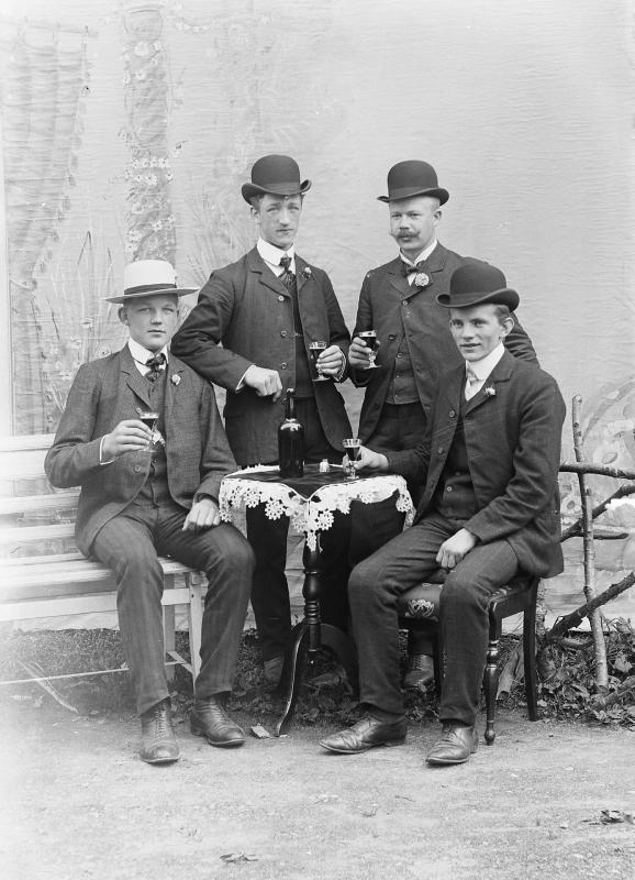 Glassplaten er skannet og behandlet av Fotohuset, Drammen. Magnus Ellefsen, Thorvald Thorgersen, Martin Olsen, Aleksander Pedersen