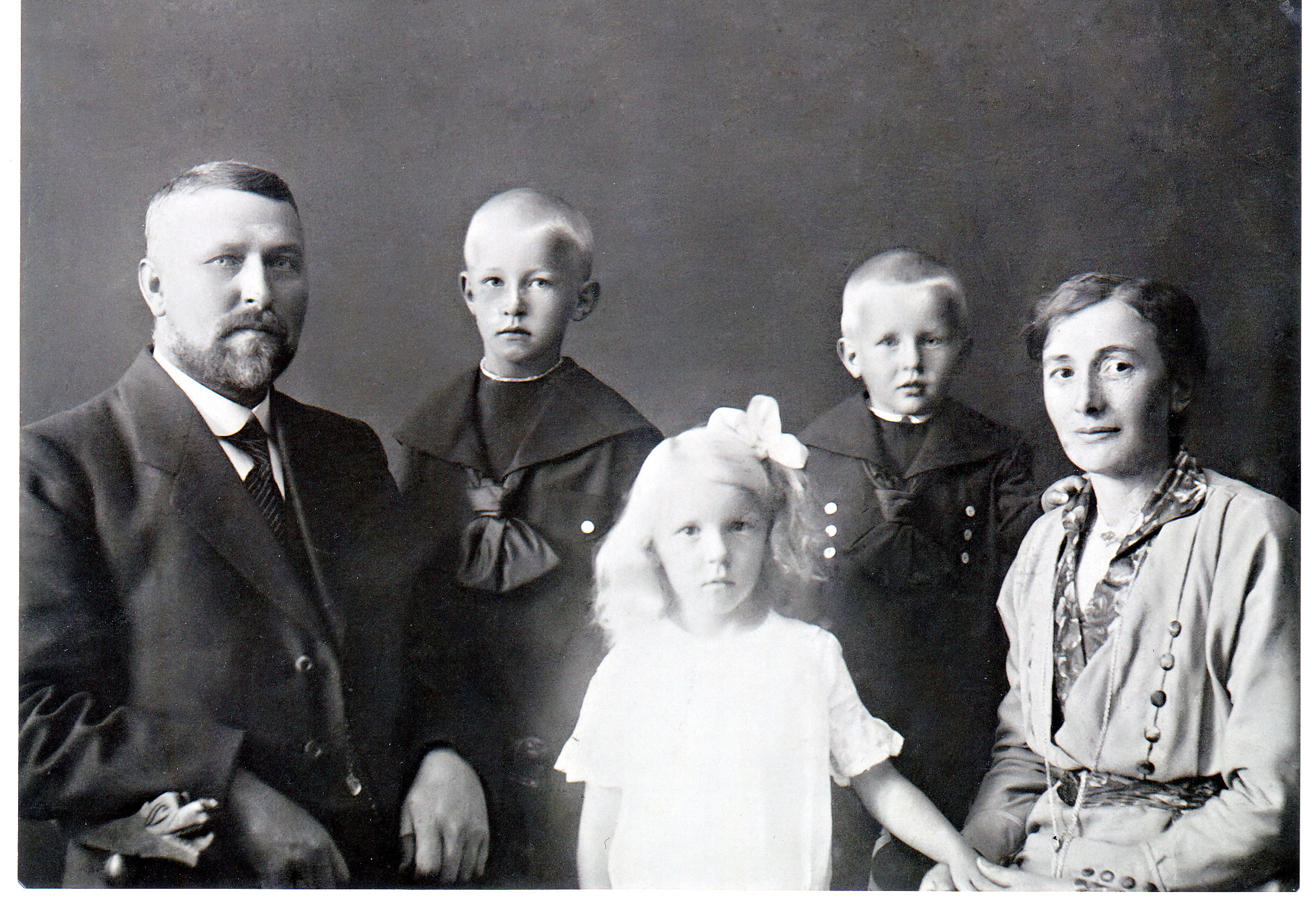 Ella Juel på Lindum med mor, far og søsken på Tuverud 1914 i Lier