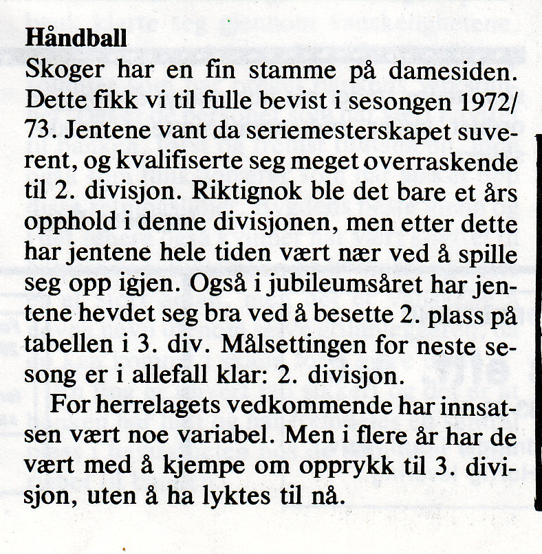 Skoger damehåndball 1972/73