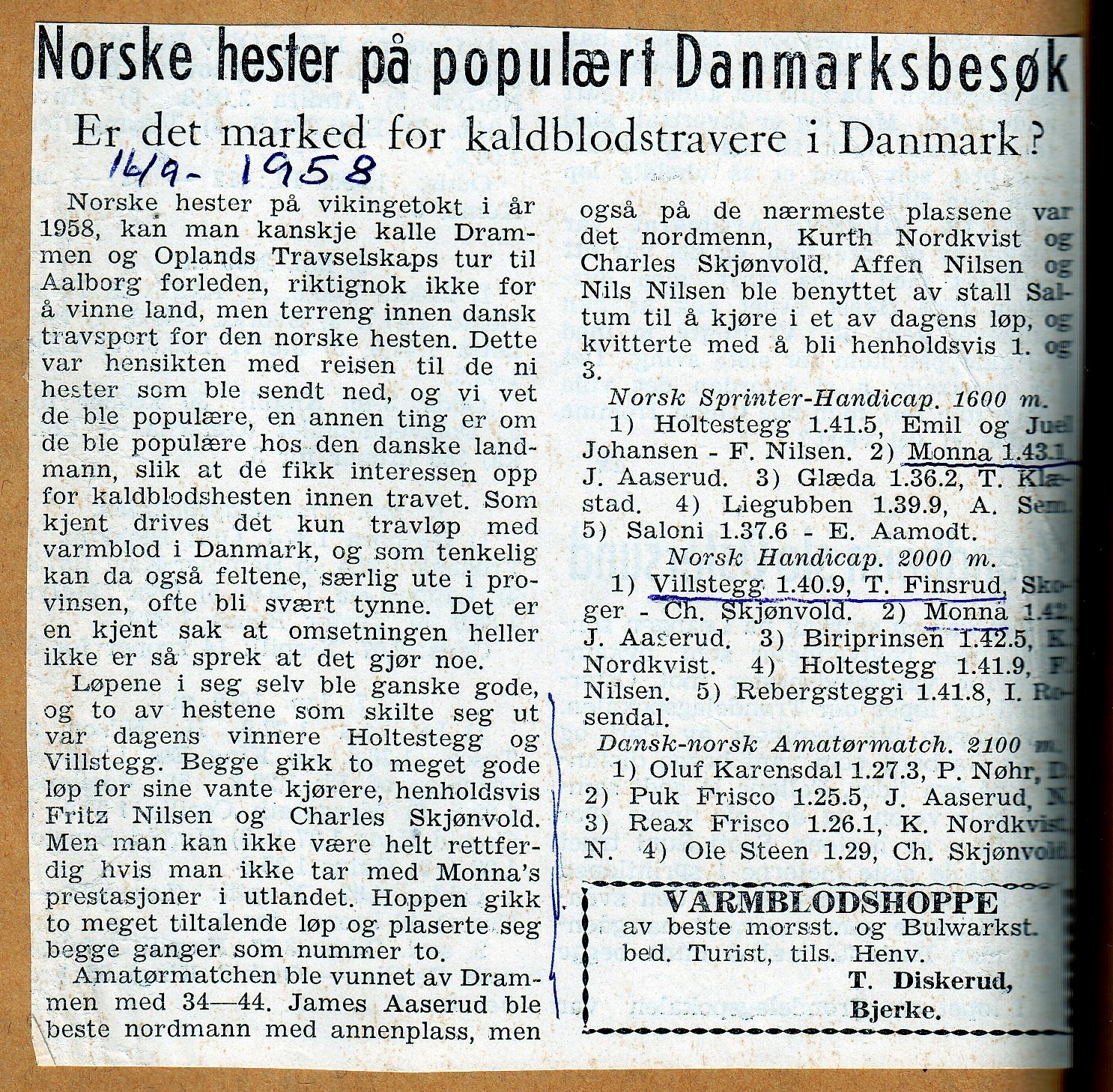 8 Skogerhester på Danmarksbesøk i 1958