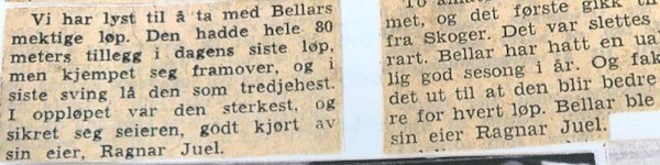 Bellar ble født på Alfheim hos Alf Juel. Han startet i flere løp etter han kom til Ragnar Juel på Nordre Flåten.