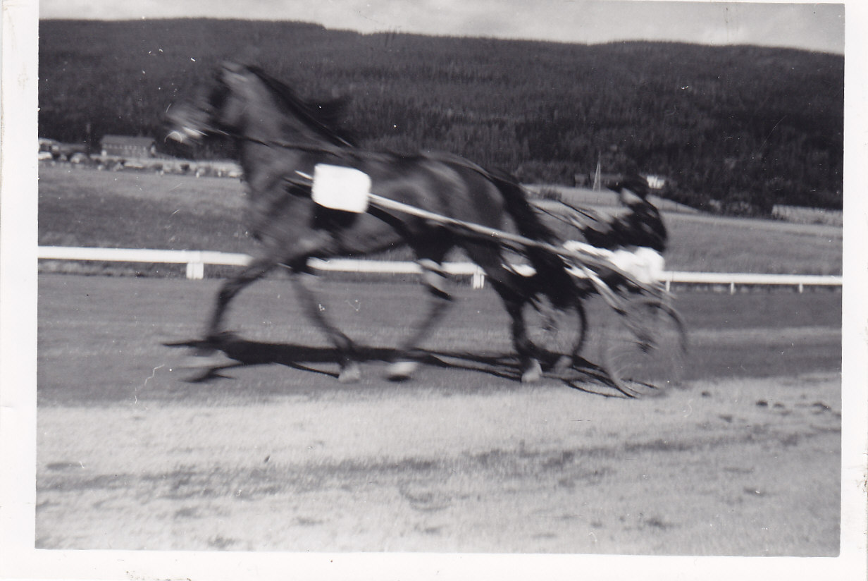 "Monna" med Torill Aaserud (Juel), Skoger i sulkyen, Ungdomsløp på Drammen travbane, 4. premie, 1961