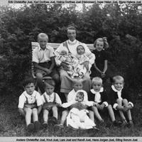 Bak : Erik Christoffer, Kari, Bestemor Helma, Inger Helen og Signe Helene Juel Foran : Anders Christoffer, Knut, Lars med søster Randi, Hans Jørgen og Elling Sørum Juel